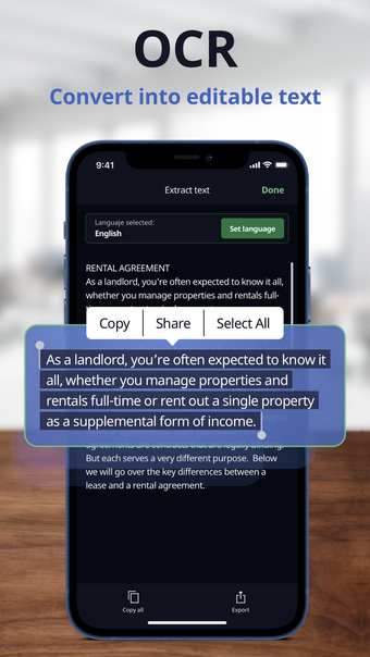 Entre sus características destacadas se incluye la capacidad de escanear documentos ilimitados, firmar electrónicamente, digitalizar identificaciones y utilizar tecnología OCR para el reconocimiento de texto. Además, combina un lector de códigos QR, permite la fusión de documentos y la exportación en múltiples formatos. La aplicación también ofrece funciones de seguridad, como la protección con contraseña, y herramientas de medición con realidad aumentada, convirtiéndola en una solución integral para la gestión de documentos.